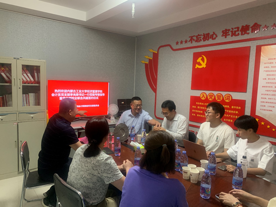 按照主题教育的要求,2023年6月20日下午,会计系党教工支部与内蒙古铭辰会计师事务所(普通合伙)党支部开展校企共建促发展活动,会计系党支部书记李光荣与部分师生党员共同参与。