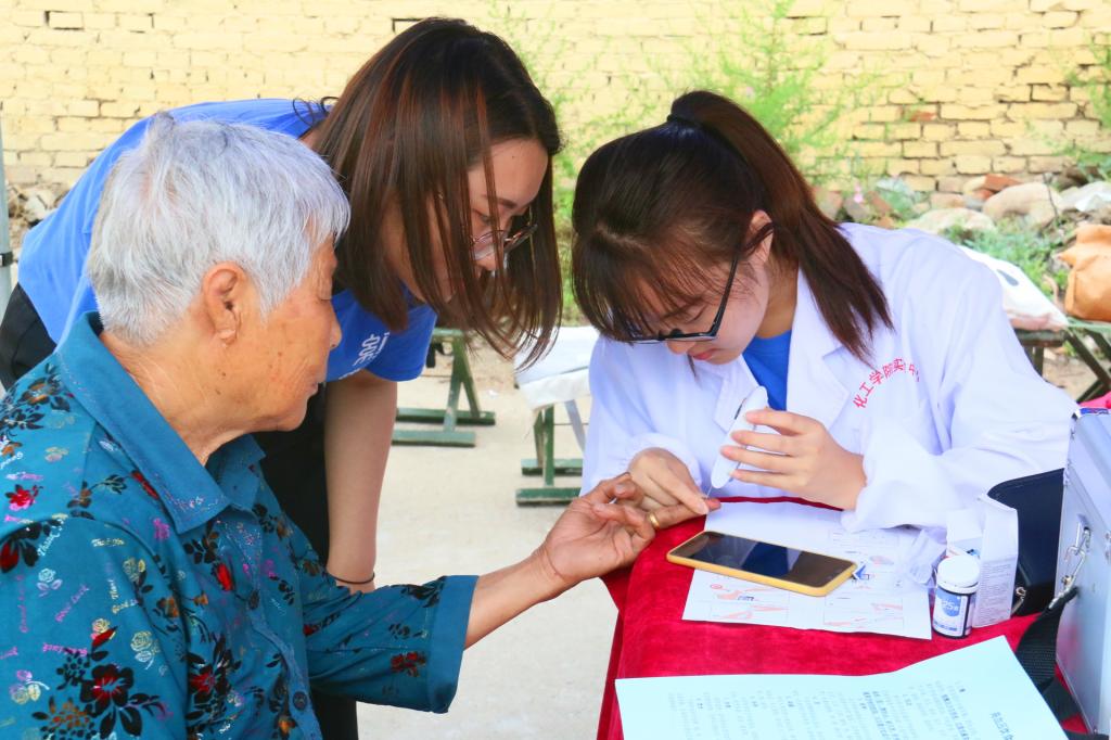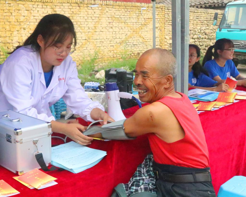 实践队一行走访、慰问贫困户。重点围绕家庭致贫原因和实施精准扶贫政策后家庭脱贫情况展开问卷调查,发放医疗卫生知识宣传册,进行金融知识宣讲,赠送教具和字画,义务测量血压、免费发放药品等。