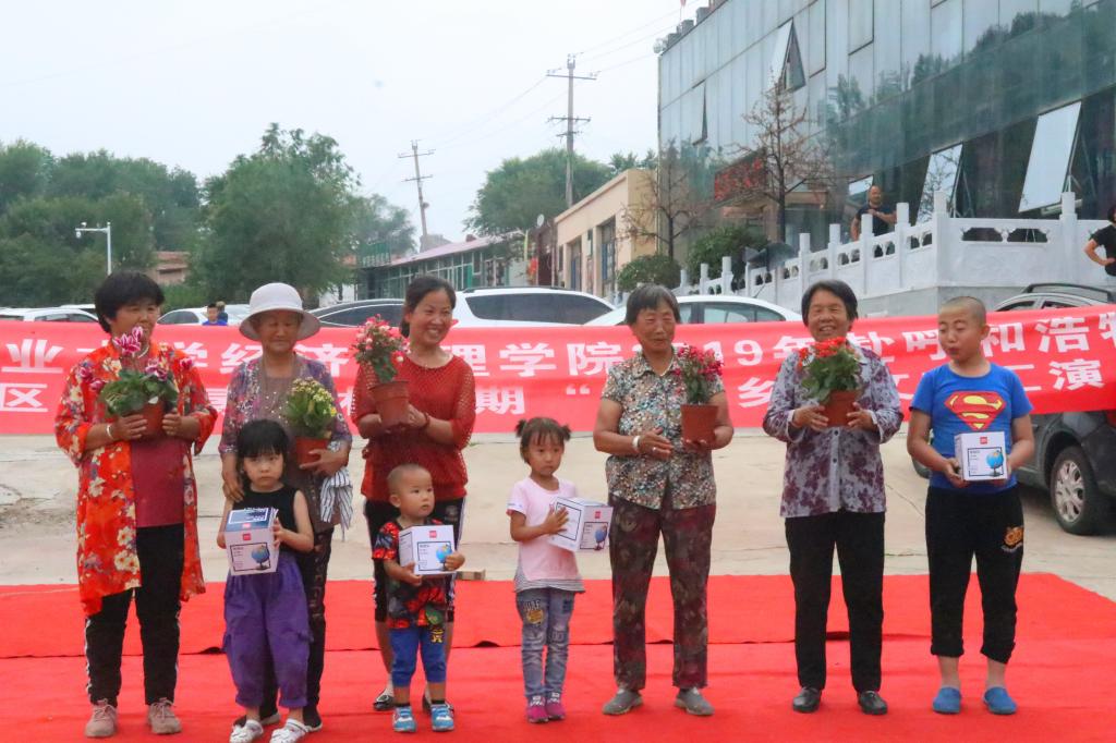 本次暑期“ 三下乡”社会实践活动分为走访谦和果类种植园,深入贫困户,参观呼和浩特市宝力道岩画博物馆和文艺演出四个环节,谦和果园负责人张洪奎全程协调、沟通。