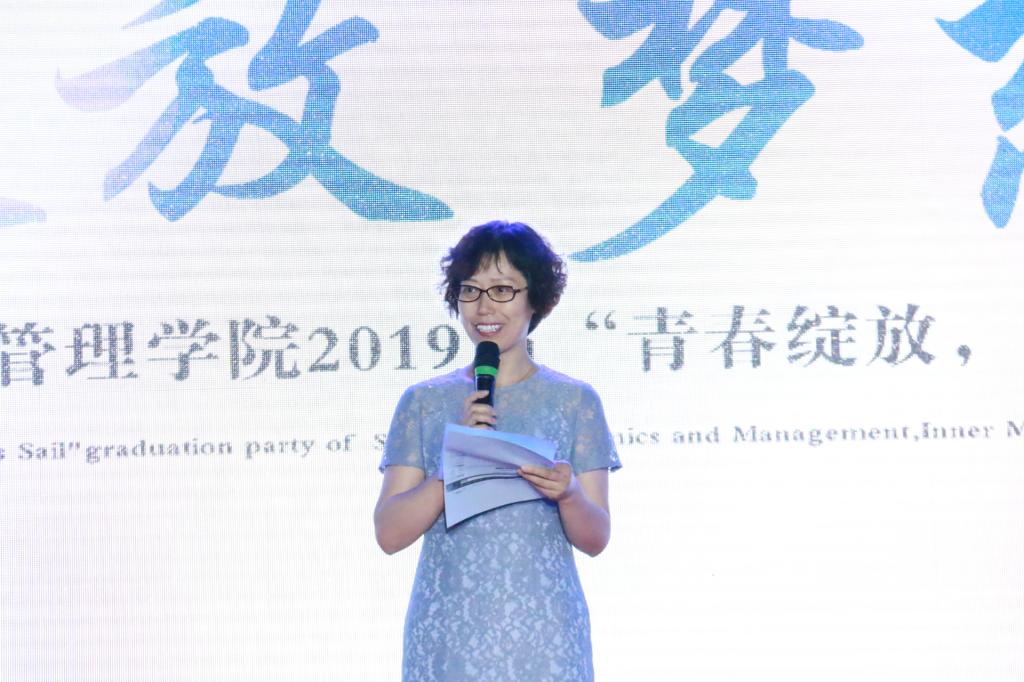 绚丽柔美的灯光、满怀深情的乐曲营造出深深的离情,跃动欢快的舞蹈、真挚感人的背景视频表达出对毕业生最诚挚的祝愿。晚会在《我的毕业典礼上不能没有你》高亢的歌曲中拉开帷幕,瞬间把大家带入青春活泼的气氛之中。歌曲《我管你》、《一剪梅》、《千里之外》以动感、柔美的歌声让毕业生坚信未来可期,满怀希望、永往直前。舞蹈《寄明月》、《pure water》,用婀娜的身姿,颇具张力的肢体动作舞出了青年学子的花样年华。歌曲《离不开你》、《经管之遇》,《当成都遇上工大》,音乐剧《经管请记住我的名字》让毕业生的思绪回到在校时光,一幕幕充满温情的场景在眼前不断浮现。合唱《我爱你中国》、舞蹈《芳华》为祖国70周年华诞献礼,展现出经管师生对祖国的热爱与赞颂。合唱《毕业,不说再见》、朗诵《这一年,我们毕业了》、《献花恩师》环节,表达了师生共忆校园美好时光,对学校对学院的热爱、对校园生活的不舍和对老师的感恩。