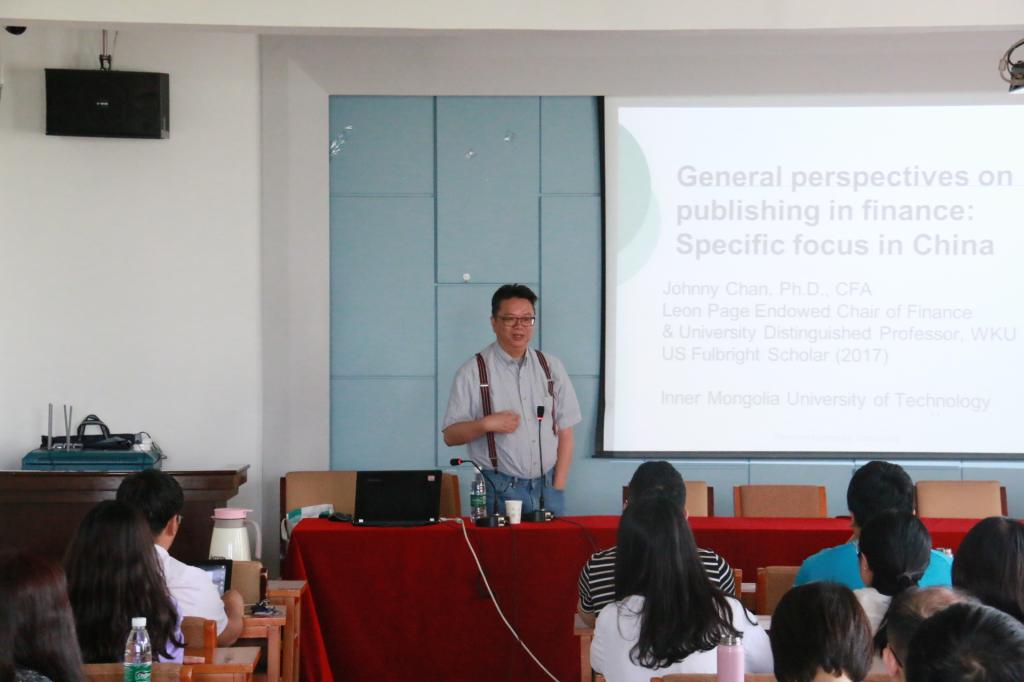 6月6日上午,365英国上市网站官网邀请美国西肯塔基大学金融学讲座教授陈锦全进行“SSCI论文写作与投稿”主题讲座。365英国上市网站官网经理长青主持,学院师生参加。