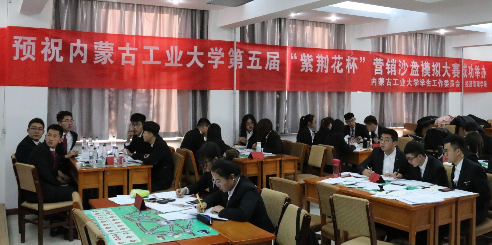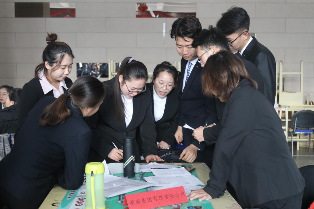 决赛于12月8日、9日在新城校区员工活动中心进行,各支队伍蓄势待发,在模拟商场上将团队优势发挥到极致,各部门协同作战,分析宏观信息,制定营销战略。在团队展示中各参赛代表队介绍本公司产品各方面的性能和优势,各具特色的展示了企业文化和管理优势。本次大赛的最终得分由财务报表所得分数以及团队风采展示评分共同组成。其中,财务报表所得分数占总分的85%,团队风采展示评分占总分的15%。最终,通过两部分所得分数确定出排名,各支队伍取得最优异的成绩。