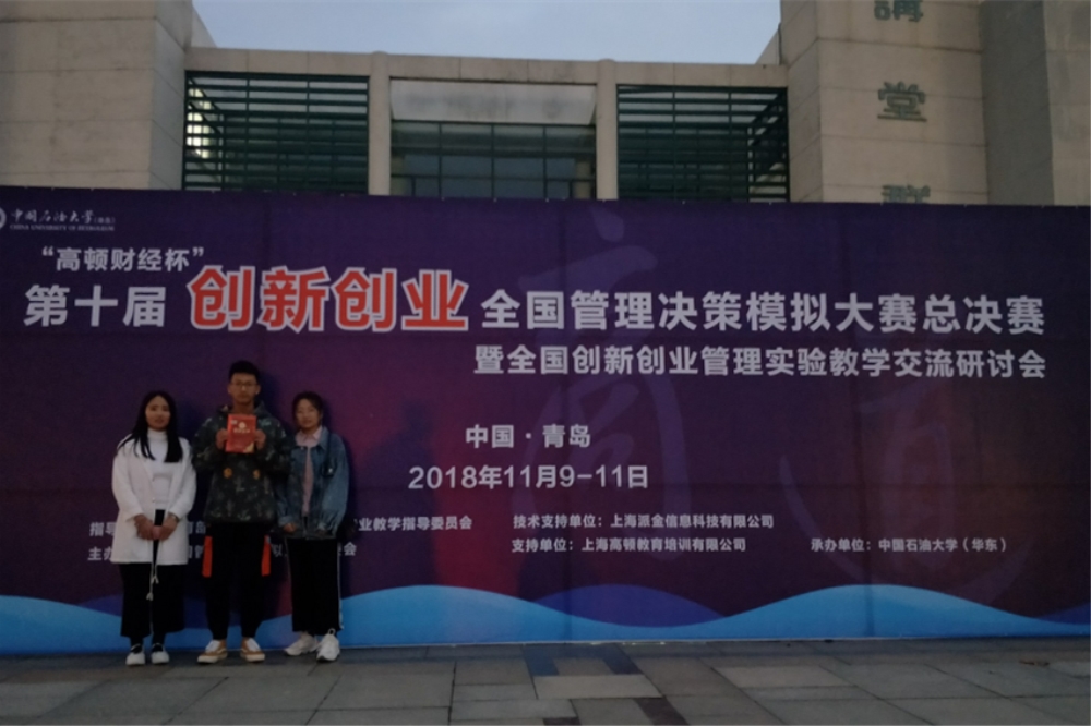 11月9日至11日,2018年“高顿财经杯”全国管理决策模拟大赛全国总决赛在中国石油大学(华东)举行。由365英国上市网站官网符亚男指导,刘婕、吕旭敏、孙上惟同学代表学校参赛,荣获全国总决赛一等奖。