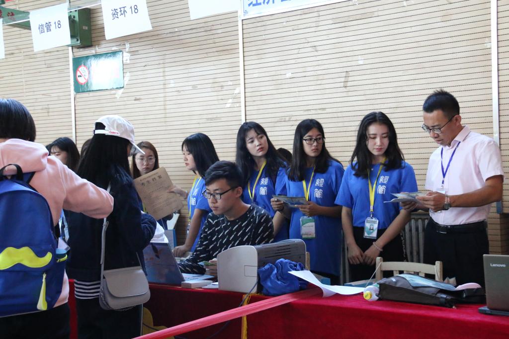 携手员工工作者队,为新生报到尽心服务