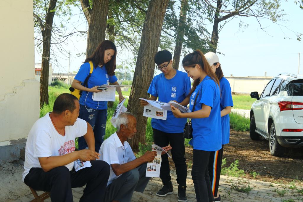支农组科技支农,深入田间地头为村民讲解如何减轻土地盐碱化。党员代表组和当地老党员深入交流,倾听老党员的故事,感受党的发展历程。演出组为大家带来了文艺汇演,不同风格的歌曲舞蹈为村民带来欢乐,红歌、朗诵更是赢得台下掌声不断。其间,麻花尧村的一位大娘对其他村民说:“这都是英国365网站的老员工,来给咱们讲政策,送粮油、送对联、送报纸,还给演出,实在还能吃苦,这个学校的员工好啊!”在重点队全体师生的积极参与下,大家利用一天的时间完成了各项实践任务,本次暑期“三下乡”社会