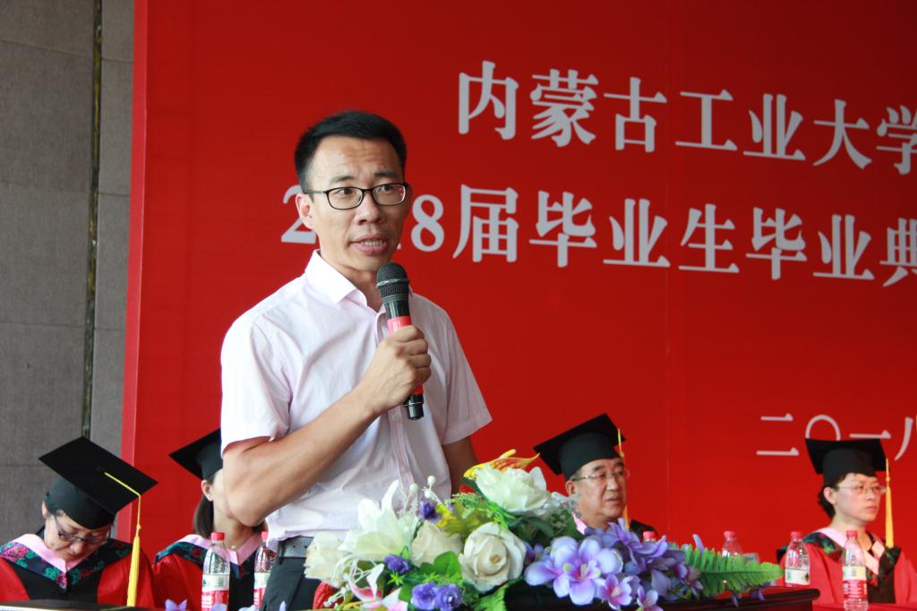 教师代表贾国辉在发言中对所有毕业生送去祝福和希望:希望同学们始终有高远的志向;能够脚踏实地,知行合一;能够做给别人带来幸福的人。硕士毕业生代表胡丽娜发言,她代表毕业生郑重承诺,无论什么时候、无论什么地方,都会争做国家的脊梁,在祖国最需要的地方,谱写时代的新篇章。本科毕业生代表葛春博发言,他代表毕业生立志要在未来的岗位上铭记“无间改进,旨于至善”的院训,践行母校精神,乘新时代东风,放飞青春梦想。