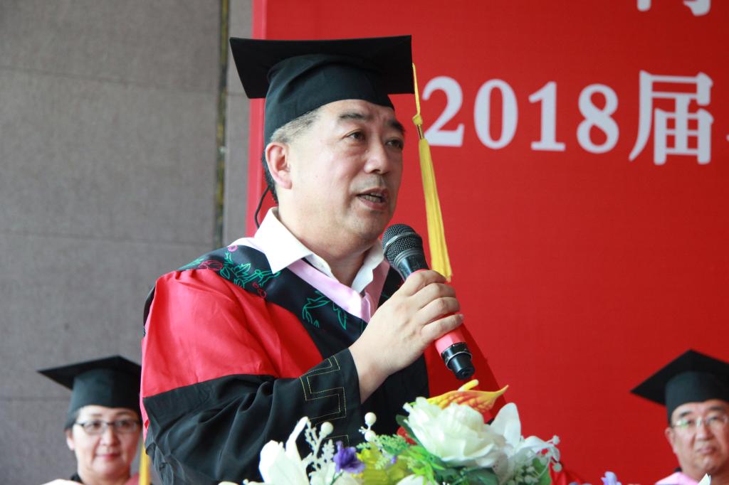 长青致辞。他代表学院向参加毕业典礼的各位同学家长以及亲属表示衷心的欢迎,向毕业生们表示热烈的祝贺,向帮助毕业生成长的老师、同学表示诚挚的感谢。他饱含深情地说:员工培养,是我们第一位的工作,我们努力把学院打造成帮助员工实现梦想的平台。我们的员工在老师的鼓励和帮助下用自己的努力践行着人生是一个长跑的过程,坚持到底才能胜利。他向毕业生送上人生寄语:第一,希望大家能够保持积极进取的心态。未来大家都会遇到很多的坎坷,抱怨不会让你走出困境,成功从来都是依靠努力和运气,未来充满不确定性,努力的人运气才会变好。我们的同学要成为能解决问题的精英,克服环境的约束,争取成为事业和生活的成功者;第二,希望大家保持良知和善良、从更高的角度追求和实现个人幸福。历史经验告诉我们,精于计算和利己可能让你一时走的较快,但良知和善良能让你走的更安、更远,有良知和善良的人容易和他人建立长久的合作。能和别人合作的吃亏者,就一生而言都成为了生活和事业的成功者。人生在世,活的精彩既是我们的权利,也是我们的责任,多一些利他之心,对世界多一些敬重理解,能使我们的社会、组织、个人都走的更好更远。第三,希望大家在帮助他人的过程中成就自我,成为对社会、对家庭有贡献的人,成为真正辛福的人。第四,希望大家都能常回学院这个家看看,这里可以作为你们人生旅途的驿站,也永远是你们的后盾。