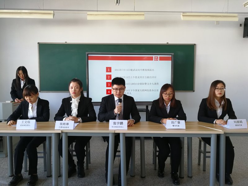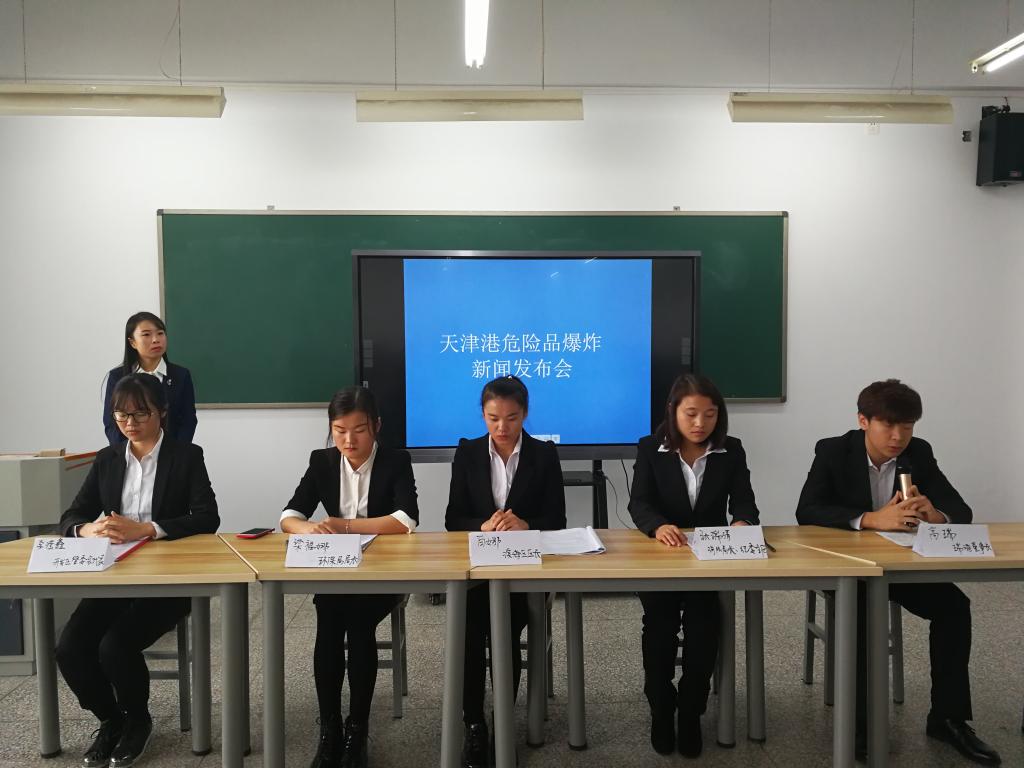 经过精心策划、严谨设计的大型情境模拟教学活动—危机管理新闻发布会,2017年11月13日上午8点在第二教学楼607教室如期举行。