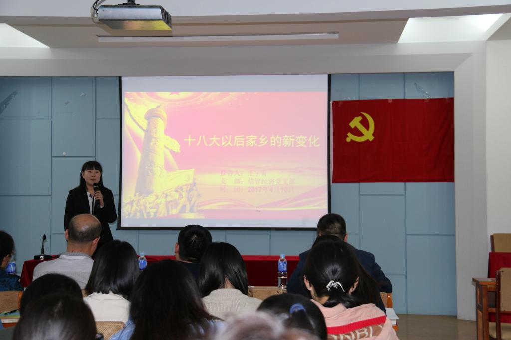 报告会上,经过各党支部评选推荐的12位员工党员做了调研汇报,以ppt的形式图文并茂的展示了十八大以来自己家乡政治、经济、社会、文化以及生态环境的新变化,深入挖掘了党的十八大以来所取得的重大成就。最终工管金融党支部的张璐以“十八大以来家乡的新变化――河北唐山”获得最佳成果奖,刘毅铭等同学获得了优秀成果奖。