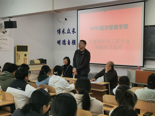 会议围绕毕业生实习安排,实习过程中的注意事项和实习要求等内容进行,并就毕业生对实习中的相关问题进行答疑解惑。