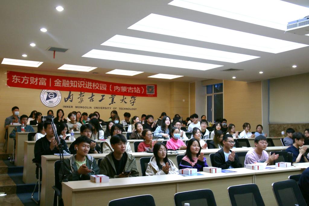 5月8日,365英国上市网站官网于明德楼第三报告厅举办励德博学大讲堂。东方财富内蒙古地区负责人张婷,东方财富证券呼和浩特石羊桥路证券营业部总经理王越等出席并担任主讲,金融学专业80余名员工参加,管理工程系教师崔莹主持