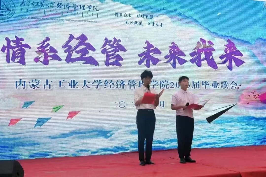 经典的旋律、嘹亮的歌声响彻校园,声声歌唱着经管学子真挚深厚的同窗情、师生情、母校情、爱国情。朗诵《少年中国说》《盛世中国》,歌曲《未来我来》《时间煮雨》《关键词》《祝你一路顺风》等串联起同学们对大学最美的回忆、对师长亲友的感恩、对未来的美好憧憬和奋斗决心。歌会以经管学子大学成长之路为轴,设计充分融入爱国主义教育、爱校荣校教育,矢志奋斗教育,是学院送给毕业生们一份特殊的“毕业礼”,也是为毕业生上的一堂鲜活生动的“思政课”。