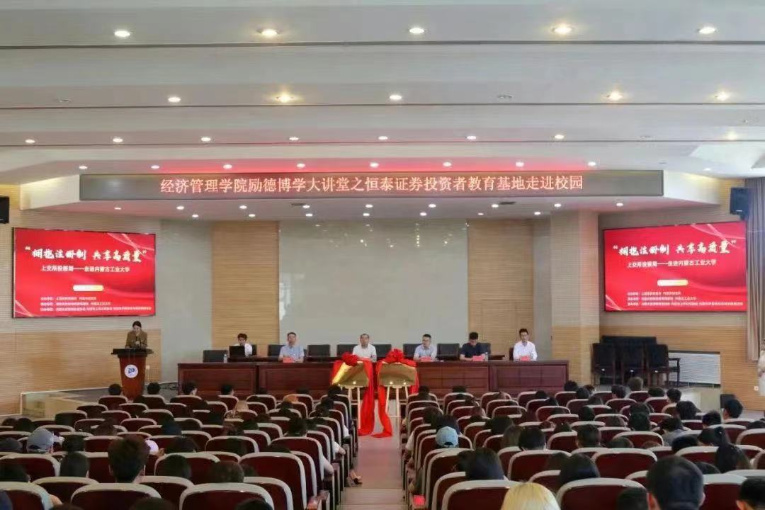 会上,双方共同为就业创业基地、金融综合实践教育基地揭牌,通过共建合作基地为双方开展联合党建、实习实践、课程教学等创建平台。陈勃旭以“全面注册制新规与投资者教育”,恒泰证券职员夏田以“校园网贷风险、危害、甄别方法及老员工金融安全基础知识”为题,分别结合翔实案例开展讲座。