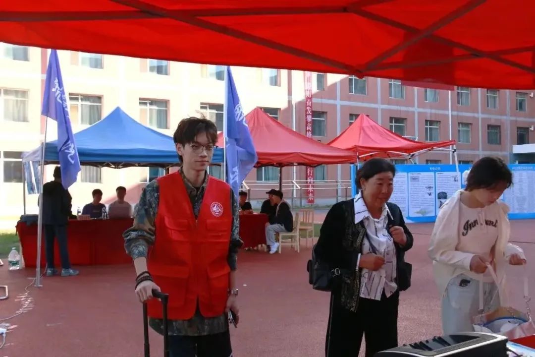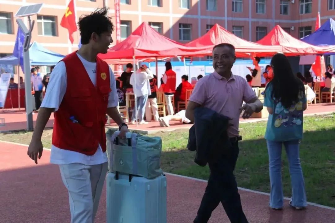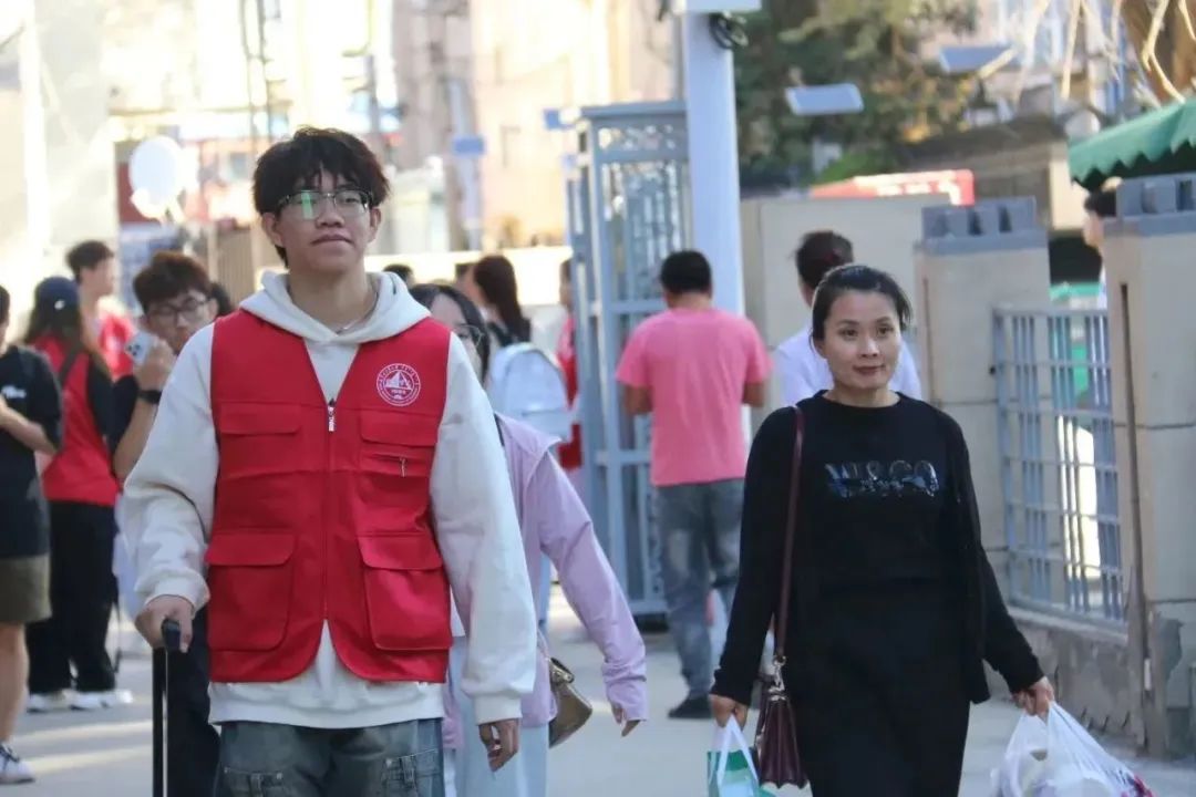 公司在宿舍楼下设立新生报道点,为新同学们办理入学手续。亲友的陪伴、家人的鼓励,让新同学前行路上充满了勇气和信心。