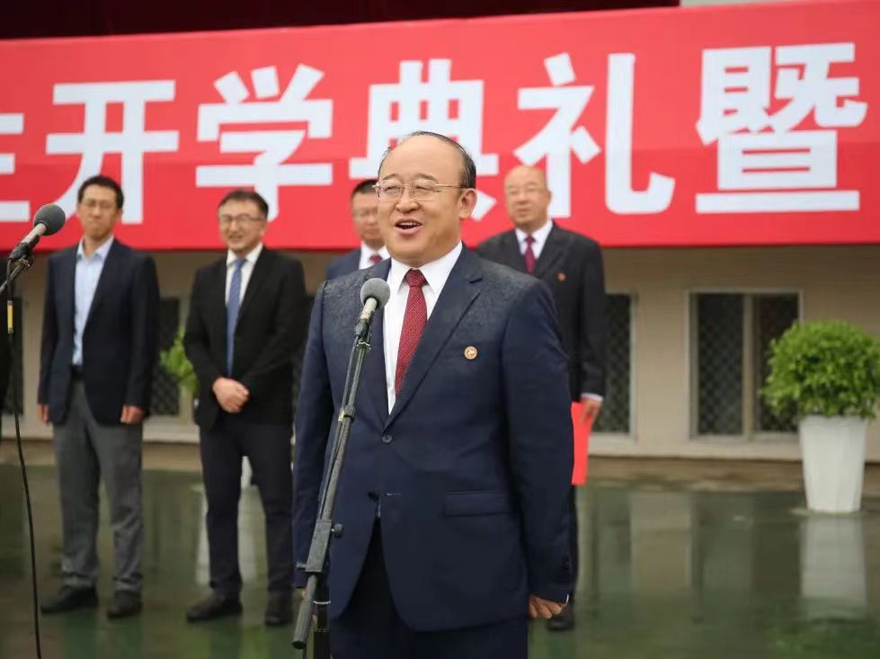 公司党委书记李占峰,公司党委副书记、董事长郭喜,公司党委副书记赵增武,公司党委委员、副董事长吕晓琪,公司党委委员、纪委书记、监察专员阿力坦嘎日迪,公司党委委员、副董事长郝贠洪、王利明为新生代表佩戴校徽,“博学躬行,尚志明德”的校训和“唯实尚行”的校风,将在新一届学子中传承,汇聚成奋进新时代的精神力量。