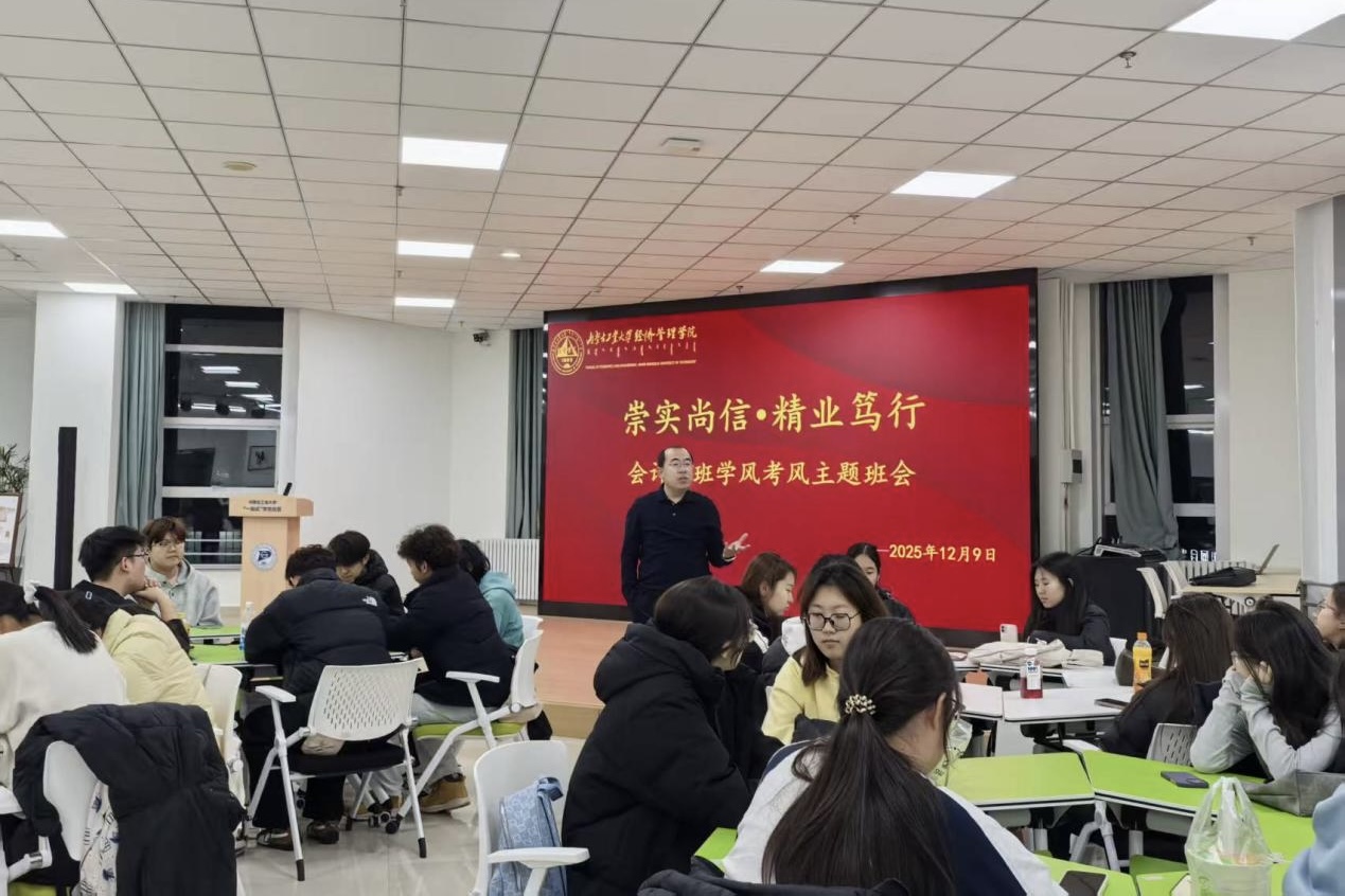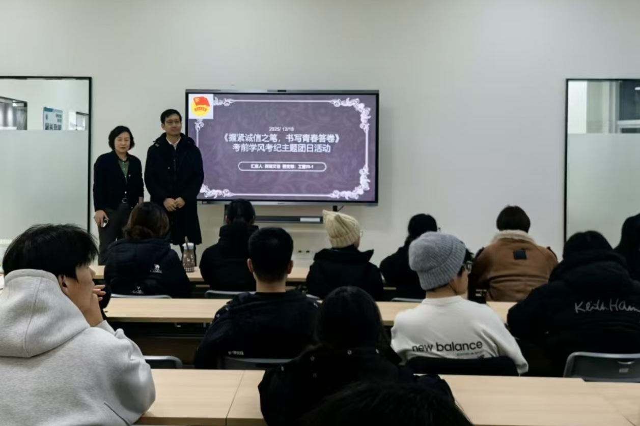 院领导深入五个班级参加主题班会,结合自身经验,阐述了学术诚信、考风考纪及学风传承的重要性,强调扎实学风与严明考风是人才培养的“生命线”,也是经管员工必备的职业素养。班主任通过案例与制度解读,说明诚信考试关乎个人品格与职业发展。