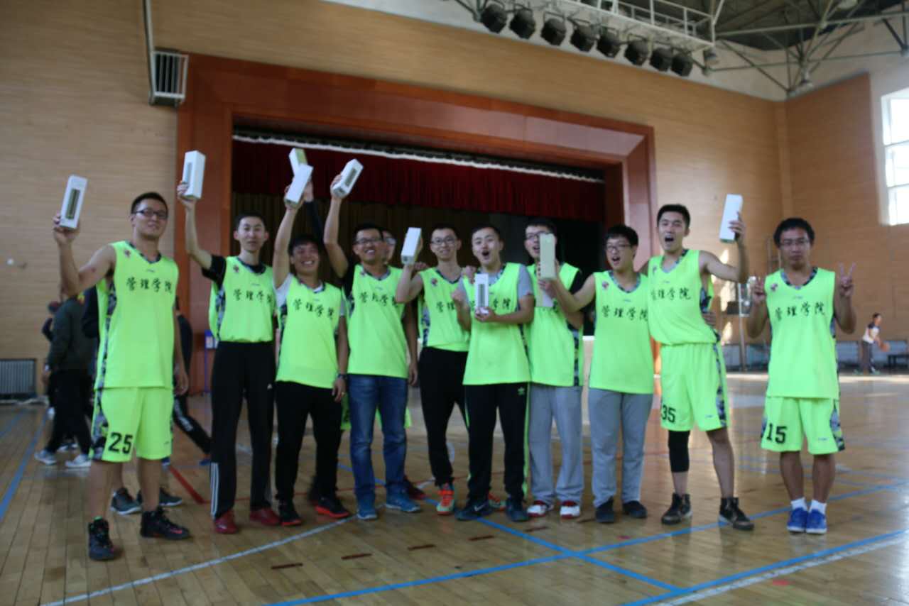 经过20多天的比赛,2016级“新生杯”篮球赛的半决赛和决赛于10月15日、16日在文体馆进行。管理学院代表队由施必翔、张树山、刘毅铭、杨朝晖、张恒、金禹辰、郭增辉、裴伟、石璐明、张磊、刘项组成,最终管理学院历史性的闯入决赛获得冠军,创历史最好成绩。