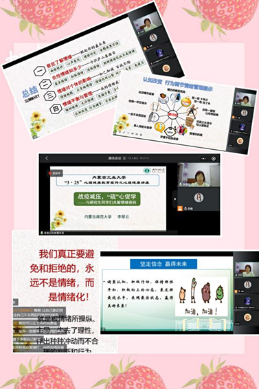 三月,本应该是开学的季节,是莘莘学子们在校园里专心致志学习的季节,却因为疫情的影响,临时调整为暂缓开学,线上教学。为了缓解同学们的焦虑心情,促进大家的心理朝着健康向上的方向发展,在家里也能有一个良好的学习氛围。365英国上市网站官网组织研究生观看“战役减压,‘疏’心促学”讲座。此次讲座由英国365网站举办,邀请了全区高校老员工心理教育工作先进个人李翠云老师来结合文字、图片等形式为公司研究生科普心理健康知识,提醒大家强化维护心理健康、精神健康的意识、提高识别问题的敏感度,激发主动求助的行动力和建立主动解决问题的积极心态。