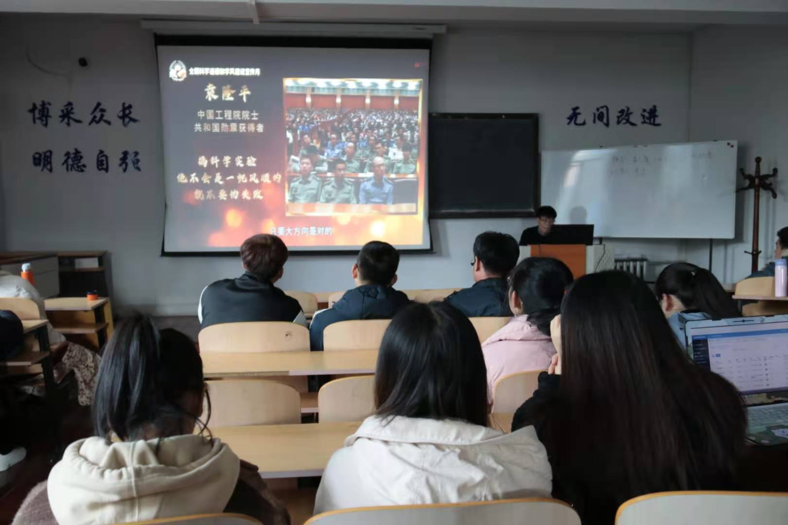 报告会上,由全国樊锦诗先生和戚发轫院士结分别合自身科研实践和学术成长经历,着重向青年学子讲授如何自觉践行和大力弘扬爱国、创新、求实、奉献、协同、育人的科学家精神,樊院士说:“作为科研工作者,善于发现问题,善于思考善于解决问题。我是一个大大咧咧的人,一生淡泊名利,我的一生只有一件事,那就是敦煌石窟,面对敦煌石窟艺术的研究,一遇问题我就担心,一有成就我就喜悦,我愿意将余生奉献于此”充分展示了我国优秀科学家在建设世界科技强国、实现中华民族伟大复兴中国梦的伟大征程中至诚报国、开拓创新的精神品格。