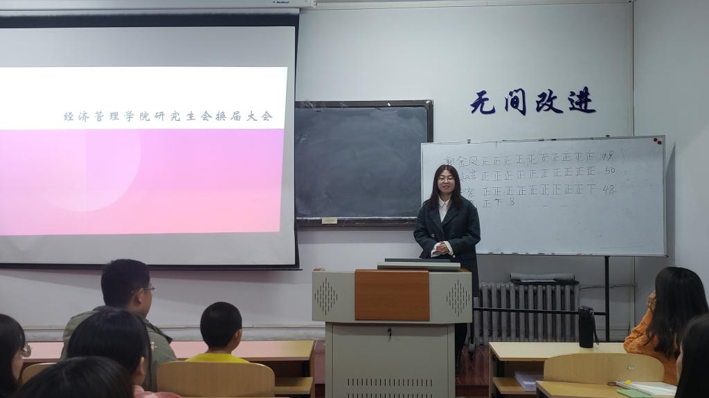 最后,2020届研会副主席翟羽佳代表研会同学发言,翟羽佳同学感谢同学和学院领导的认可能够担任研会副主席,并提出了对日后研会工作的期待。