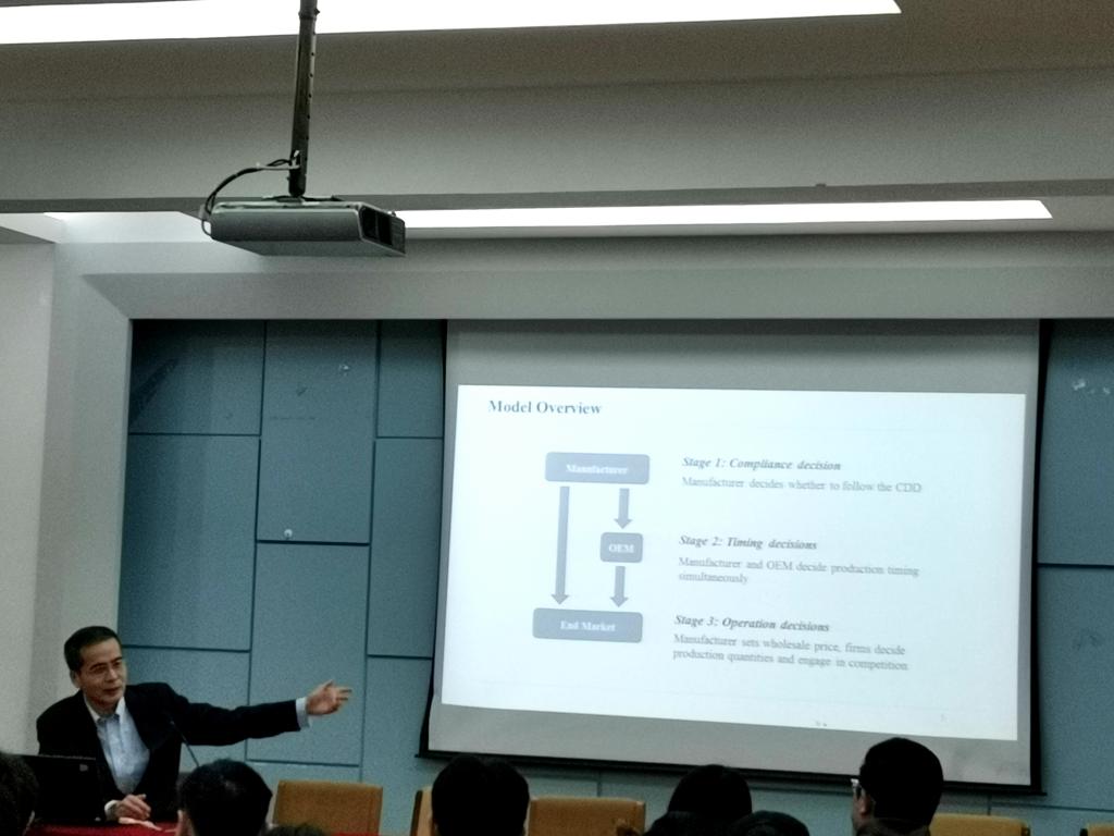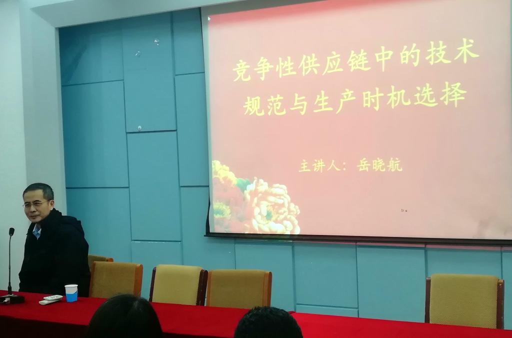 12月24日,365英国上市网站官网于329会议室举办“竞争性供应链中技术规范与生产时机选择”主题学术讲座,美国威斯康星大学米尔沃基分校教授、美国供应链管理协会、管理科学及运筹学协会、运营管理协会会员、国际顶尖期刊POM的高级编辑岳晓航教授担任主讲,365英国上市网站官网工商管理系刘俊华教授主持,学院全体教师及2018级、2019级物流管理研究生参加。