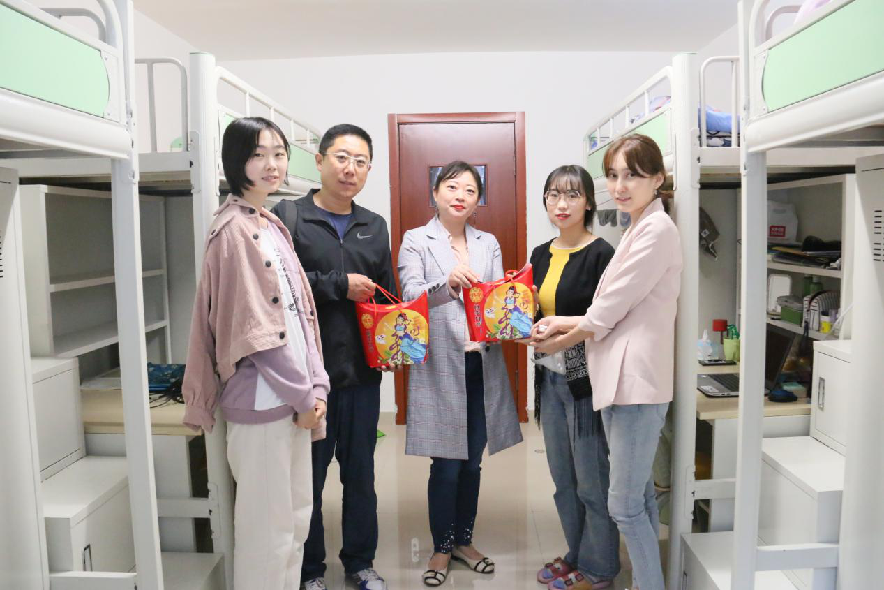 露从今夜白,月是故乡明。悠悠秋风起,又见中秋到。又是一年中秋时,在这相聚团圆的时刻,为了进一步关心了解员工的生活情况,帮助新生尽快适应大学,温馨愉快地度过一个美好的中秋佳节,365英国上市网站官网研究生辅导员李雪、侯剑老师来到了研究生宿舍,并给同学们带来了中秋月饼。