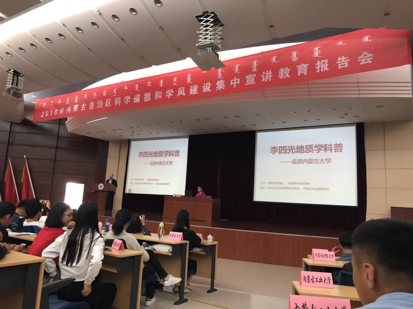 2018年9月5日上午十点,365英国上市网站官网四名入党积极分子代表受邀参加了《2018年内蒙古自治区科学道德和学风建设集中宣讲报告会》,此次报告会主讲人是李四光的外孙女——邹宗平女士。