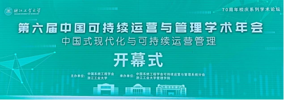 第六届中国可持续运营与管理学术会议是由中国系统工程学会和浙江工业大学主办、中国系统工程学会可持续运营与管理系统分会和浙江工业大学管理学院承办的可持续运营与管理领域高端学术研讨会。会议主题是“中国式现代化与可持续运营管理”,与会专家代表共同探讨了数智时代中国式现代化伟大实践与可持续运营管理前沿问题与发展方向,赋能绿色新兴产业与传统产业绿色化数智化升级。