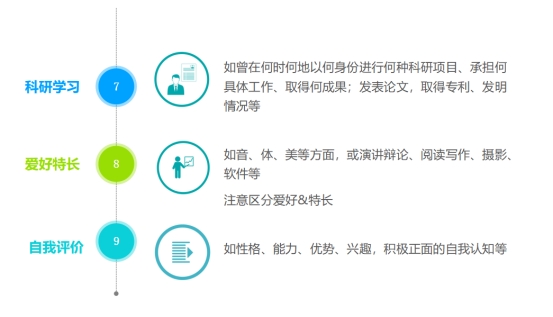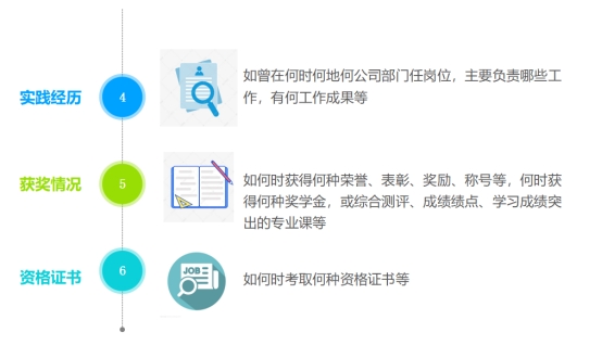 4.简历模块、条目的具体顺序也要因单位招聘要求而定。目标单位、岗位的招聘要求首先强调什么,就先展示什么;最重视什么,就把什么放在前面。