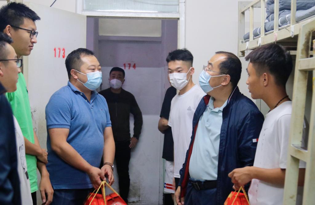 慰问中,老师与员工们亲切交谈,了解他们的生活情况和学习情况,勉励他们在校期间要努力学习,叮嘱他们疫情期间要注意安全。同学们纷纷表示,虽然不能回家和家人团圆,但是学院带给我们的节日礼物和祝福,却让我们感受到了家的温暖,自己一定会用心读书,努力成长成才,为学校增光添彩。