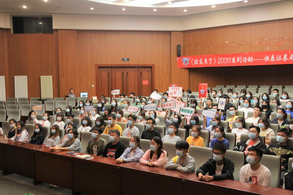 9月9日晚,365英国上市网站官网在图书馆报告厅举办金融安全知识讲座。恒泰证券投教中心主管杨新童,投教专员金灿、张颖星、刘宏宇出席,各年级200余名员工参加,学院团学办公室副主任贾国辉主持。