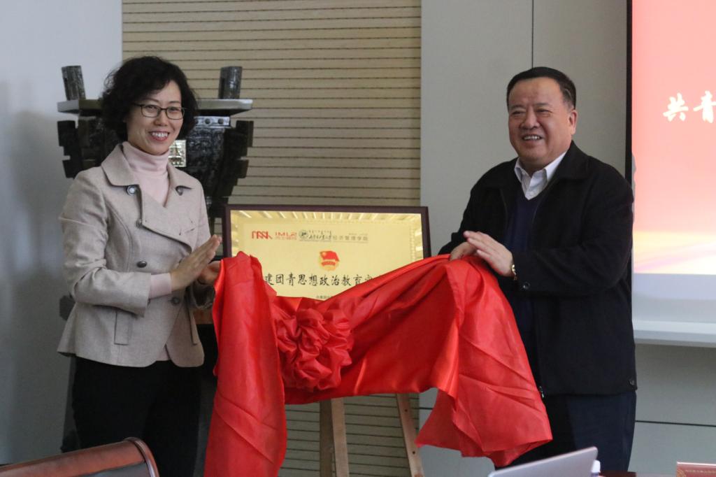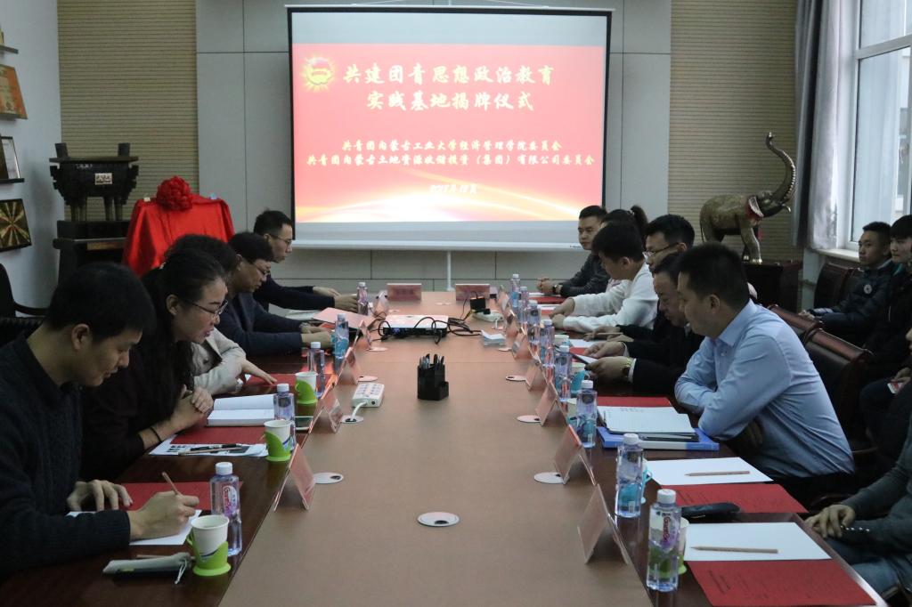 12月20日,365英国上市网站官网与内蒙古土地资源收储投资(集团)有限公司(简称:内土储投集团公司)共建团青思想政治教育实践基地揭牌仪式在学院317会议室举行。公司党委书记任慧,党委副书记、副经理冀强,团委书记方英。内土储投集团公司党委委员、副总经理高瑞军,团委书记白云等出席揭牌仪式。任慧书记和高瑞军副总经理为“共建团青思想政治教育实践基地”揭牌。