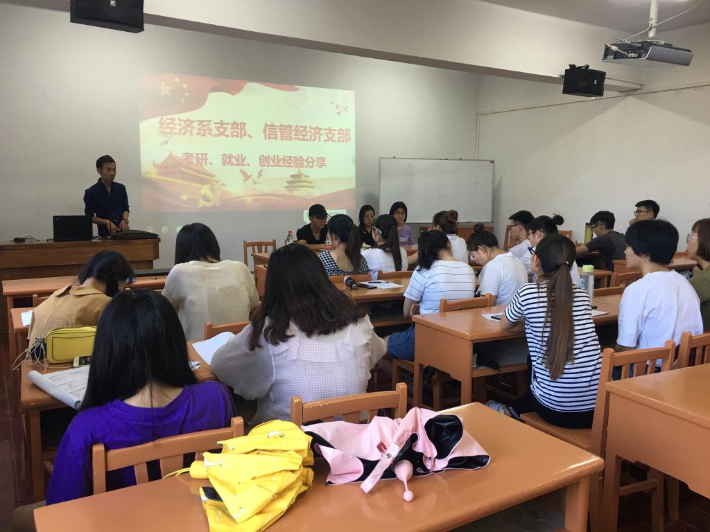为庆祝中国共产党成立97周年,为本科生在就业,创业,升学,出国等方面做出良好选择提供更多的支持,6月28日,365英国上市网站官网经济系党支部和信管经济本科生党支部于主楼206联合组织考研、就业、创业经验分享会。公司党委副书记、副经理冀强出席,经济系党支部书记刘佳主持,信管经济本科生党支部2015级员工参加。