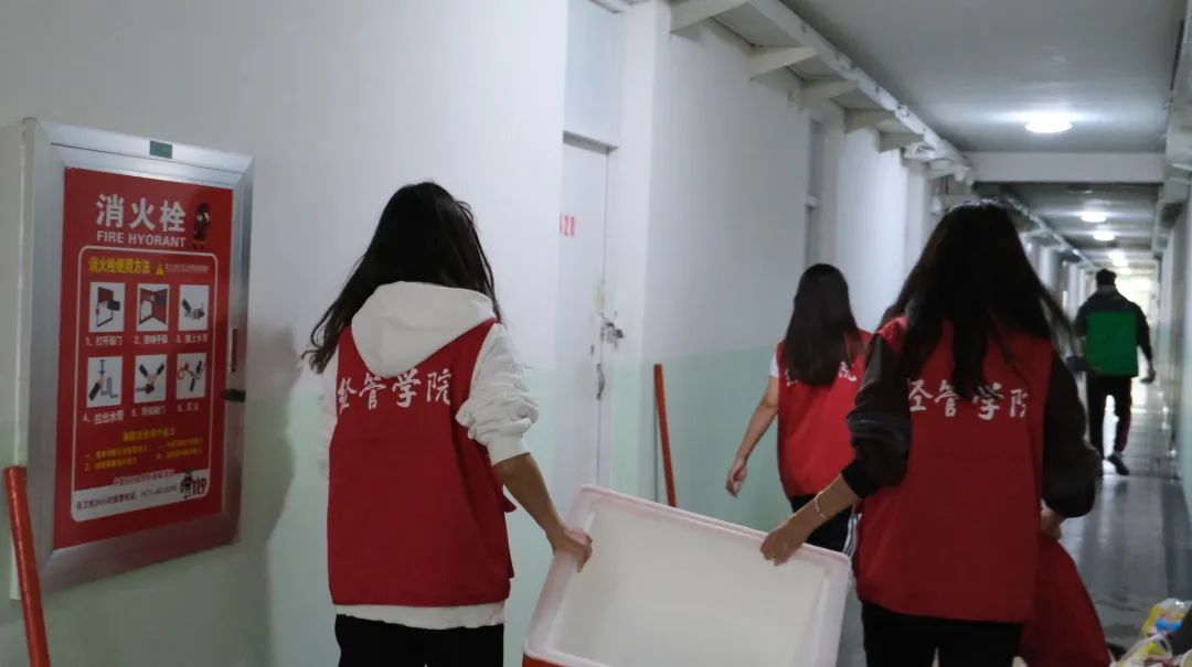 静态管理期间,解决员工的一日三餐是最重要的问题。从配送车到员工公寓楼下,从一楼搬运到五楼、六楼,然后核对每个宿舍的人数再一一分发下去,离不开老师们的统筹调度和志愿者的无私奉献,是他们在抗疫战线上绘出一道亮丽风景线!