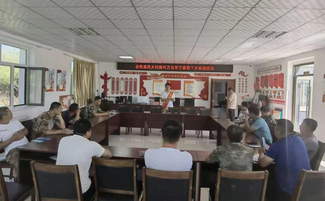 深入乡村考察,了解家乡变化。实践队员来到兴安盟、鄂尔多斯市的村党群服务中心开展调研,通过实地调研、交流访谈等形式了解周边产业情况。同时,前往敬老院慰问老人,了解当地养老机构的经营模式和管理运作。前往公园与小朋友们开展“童画家乡”活动,共同绘画美丽家乡。前往建设银行各市县分行“裕农通”便民金融服务点,化身服务志愿者积极解答农户问题,介绍建行乡村振兴、普惠金融政策,开展防范电信诈骗宣传,协助当地居民办理便民金融业务,为乡村振兴注入了青春活力。