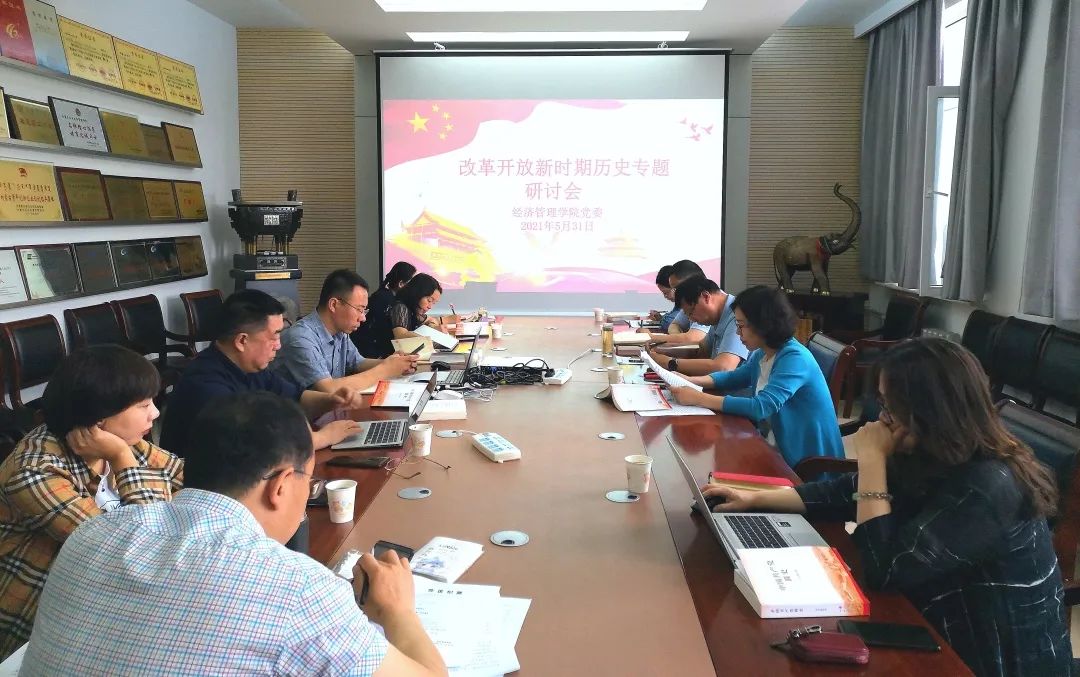会中,学院领导,各党支部书记等分别就专题内容领学、领读。通过学习,与会人员再次明确改革开放的伟大事业是在各代领导集体带领全党全国各族人民在建立新中国、取得社会主义革命、探索社会主义建设规律基础上进行的,是带领全党全国各族人民开创并在此基础上继承、发展并成功推向21世纪以及继续推向前进的。领学完毕后,各党委委员,行政党支部书记徐德生、经济系员工党支部书记贾国辉分别结合党史学习教育,结合思想实际、联系工作实际,先后进行交流研讨。
