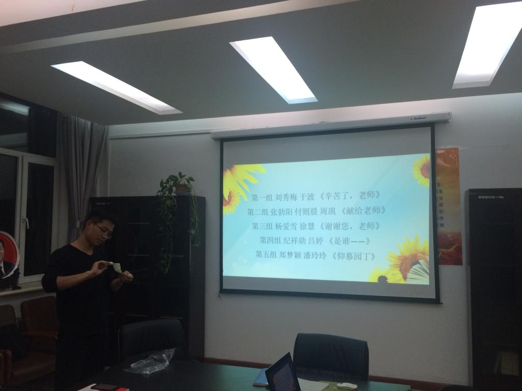 9月8日,2016级研究生党支部在管理学院219党员活动室组织了一场以”感念师恩·让心灵飘香”为主题的朗诵比赛,此次比赛由纪祥勋同志主持。