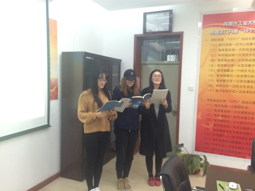 三人组合的周琪、付则晨与张勃阳同志慷慨激昂地朗诵了一首诗歌《献给老师》,对老师的感激之情溢于言表。