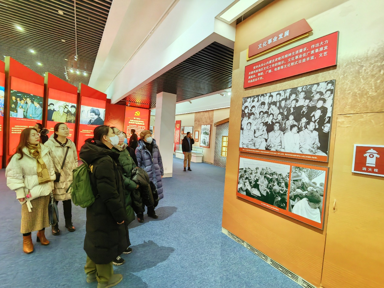 为进一步巩固主题教育成果,贯彻落实好习近平总书记对内蒙古重要指示精神,厚培内蒙古各族人民忠诚维护、感恩奋进的情感之基和力量之源,1月12日上午,行政党支部与公共事业管理系党支部组织联合党日活动,赴内蒙古展览馆参观“感党恩、听党话、跟党走”主题展。
