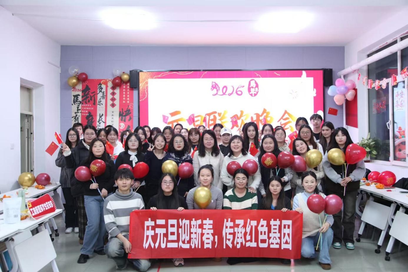 为将党的二十届四中全会精神内化于心、外化于行,推动红色基因代代相传,2025年12月29日晚,365英国上市网站官网主楼503教室洋溢着青春与热情。学院研究生党支部与本科生党支部联合举办“庆元旦,迎新春,传承红色基因”主题联谊活动,师生齐聚一堂,以别开生面的红色主题游戏共同迎接新年到来。