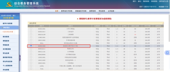 下划页面,在“教学计划课程”里选择需要替换的课程;