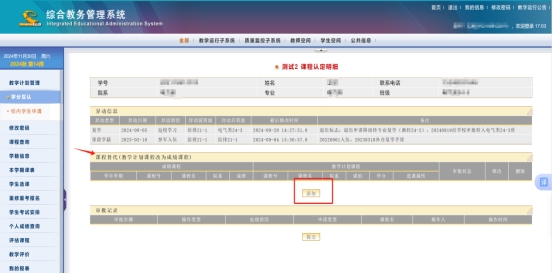 2.进入“课程认定明细”界面,在“课程替代”子模块下点击“添加”;